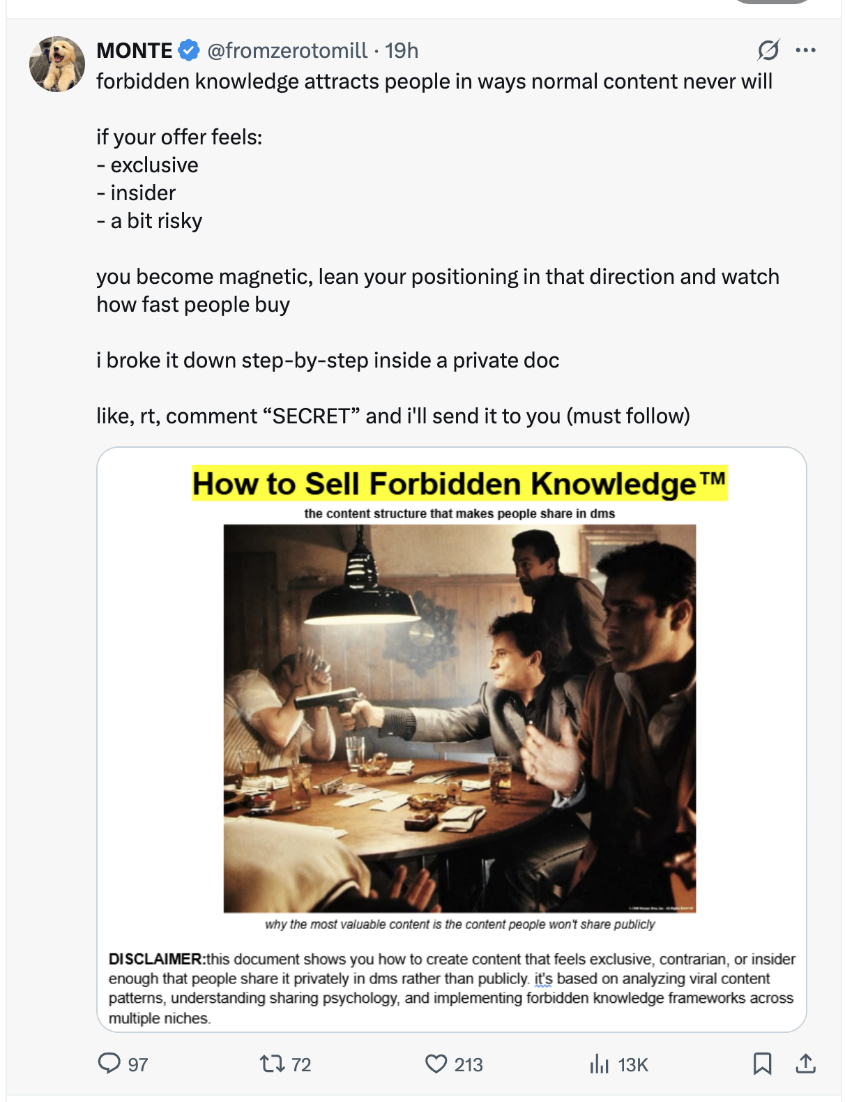 Creators on X have started using a very simple but extremely effective format: a screenshot of a plain looking “guide” or “system” with a bold header, a disclaimer, and a few visual proof elements.